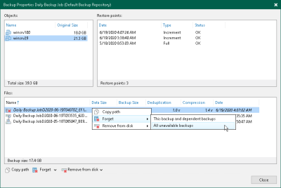 - Right click the missing restore point and select Forget or Remove from disk depending on what you want